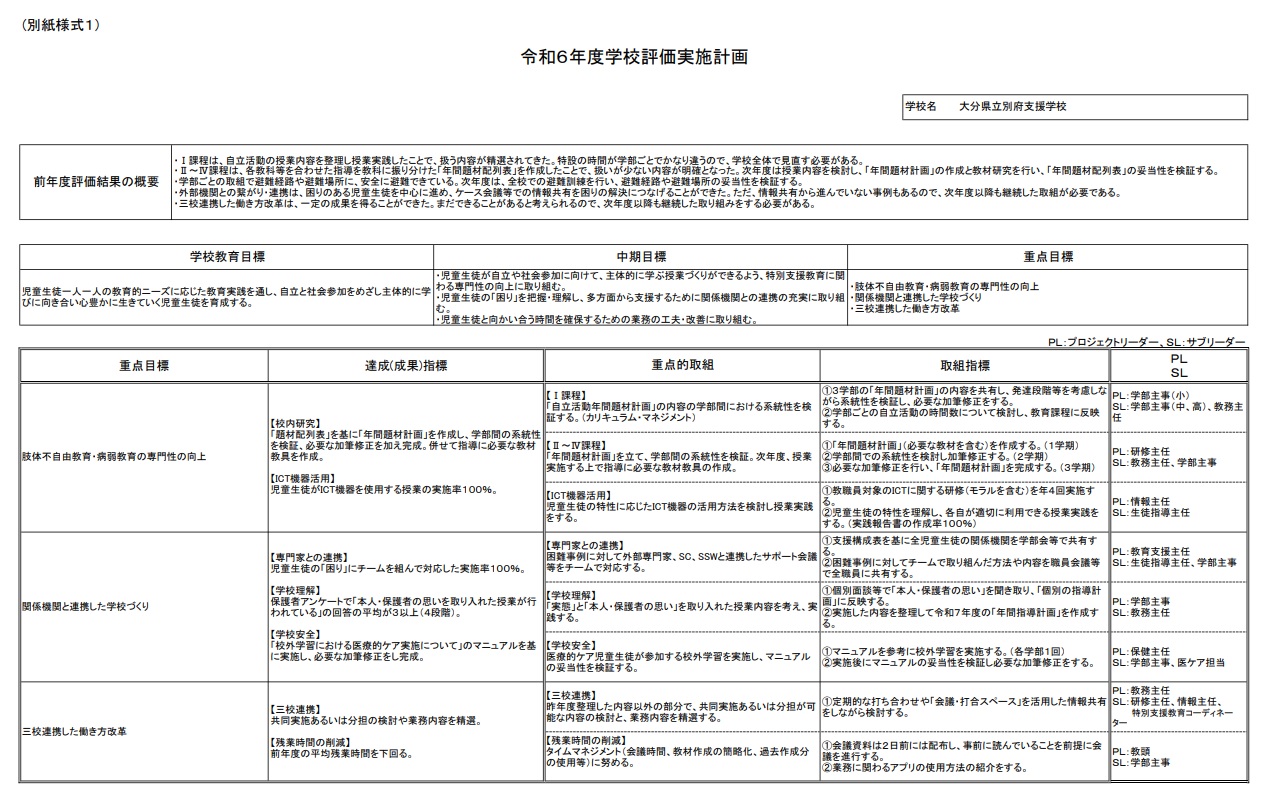 【令和6年度】学校評価実施計画
