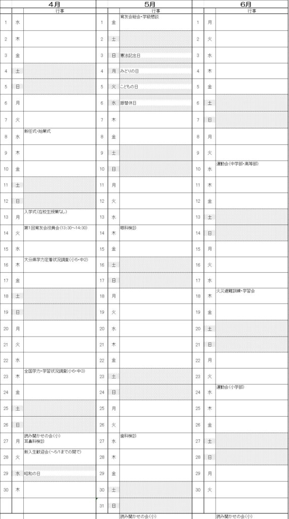 令和8年4月~6月行事予定表