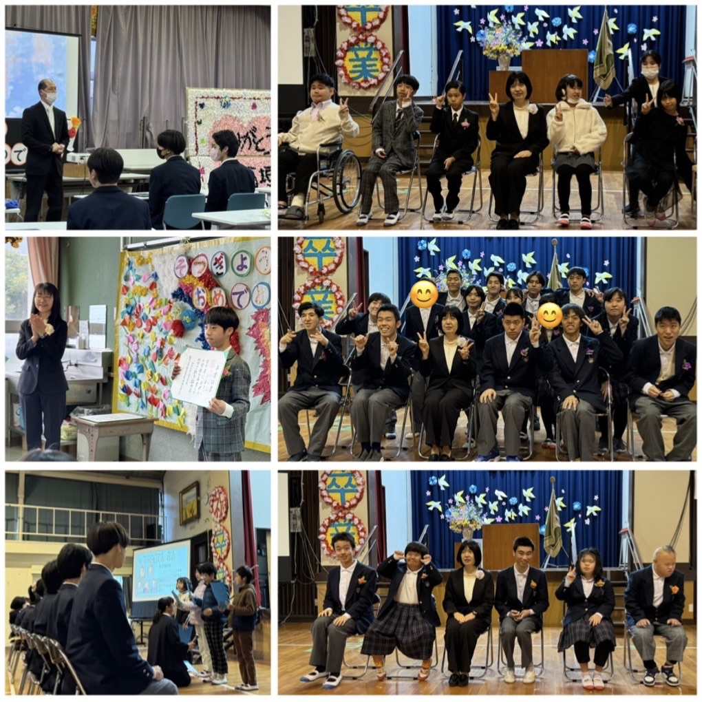 3月2日(月)、小中学部第39回・高等部第27回卒業式がありました。本年度は、小学部6名、中学部5名、高等部15名の計26名が晴れて卒業の日を迎えました。多くの来賓の方々や保護者の皆様にご臨席いただき、心温まる、思い出深い卒業式となりました。南石垣支援学校としての最後の卒業式となりました。