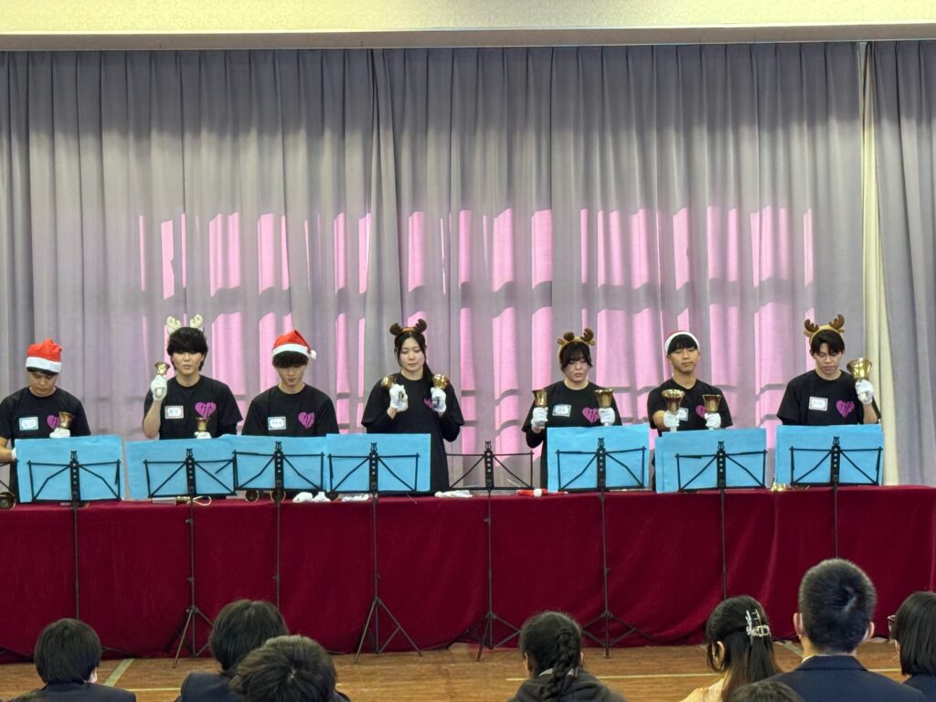 12月19日(金) 高等部3年が、別府大学短期大学初等教育科と交流しました。地域協働学びの会として、ハンドベル研究会の皆様に来校していただき、交流が実現しました。