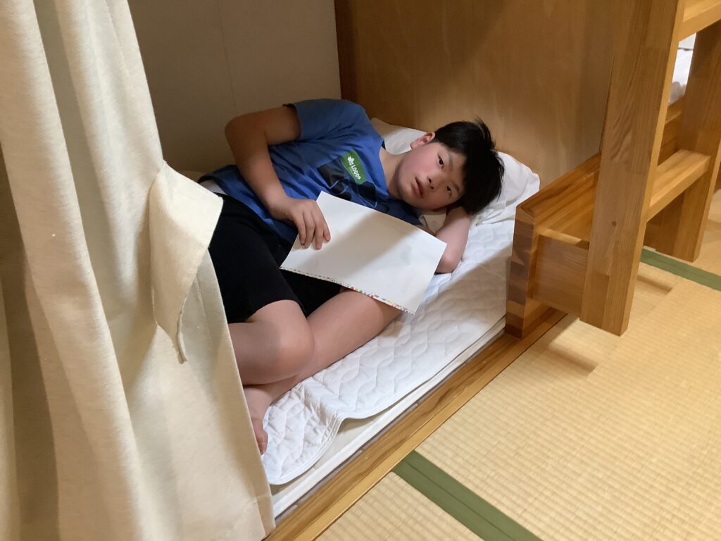 宿泊先の海峡の風では、友だちと美味しいご飯を食べたり、先生と寝る準備をしたりしました。