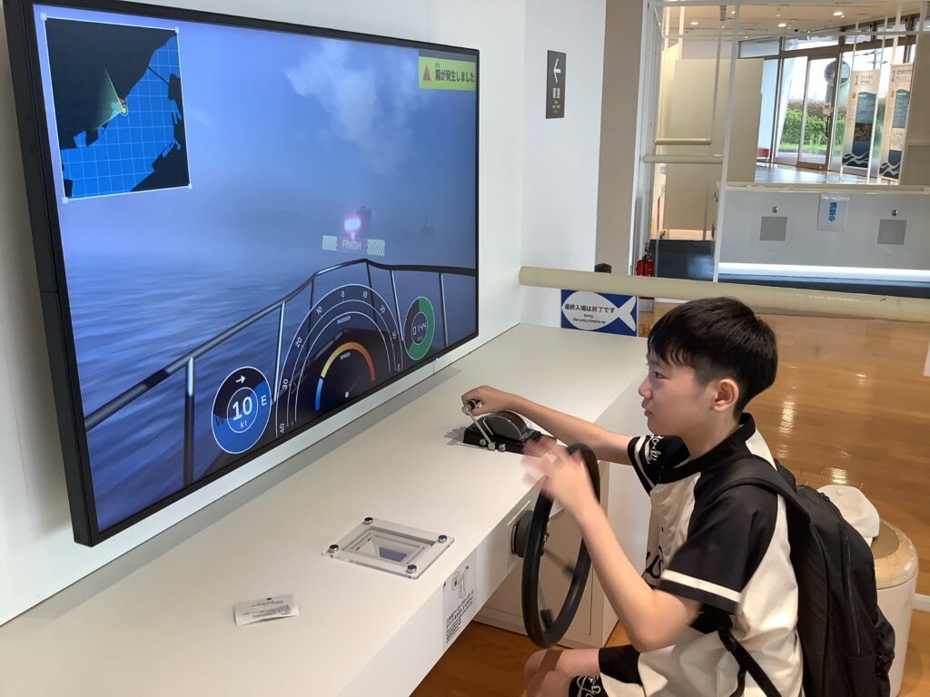 関門海峡ミュージアムでは、船長になって船を操縦したり、ダイバーになって魚を見つけたりしました。