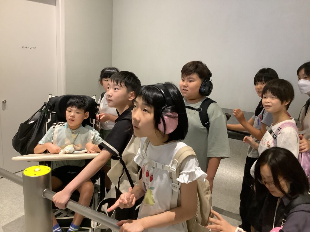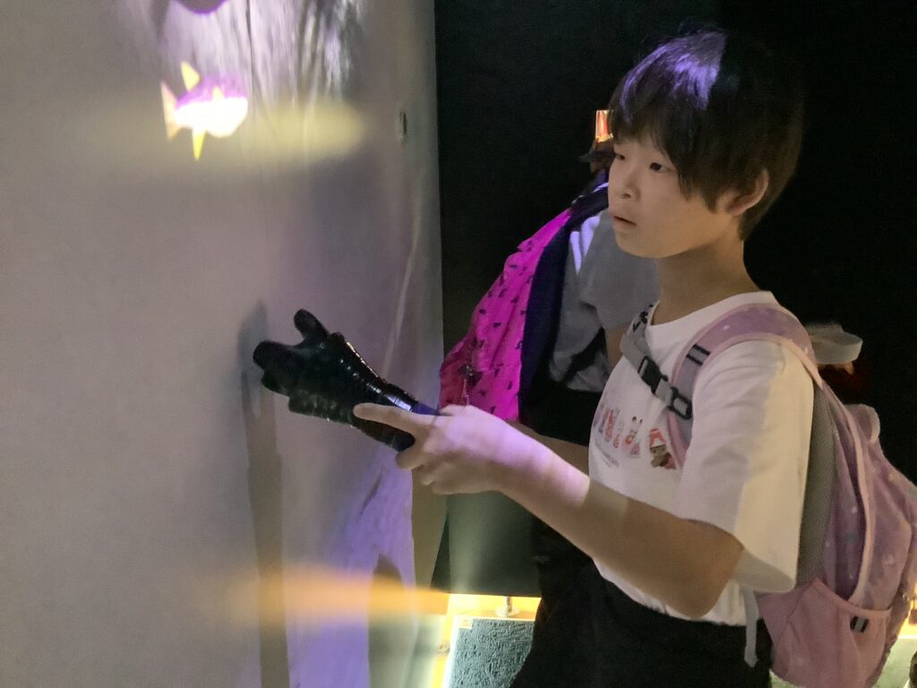 スペースLABOでは、プラネタリウムを見ました。また、風を感じたり、光や音などを体験したりしました。