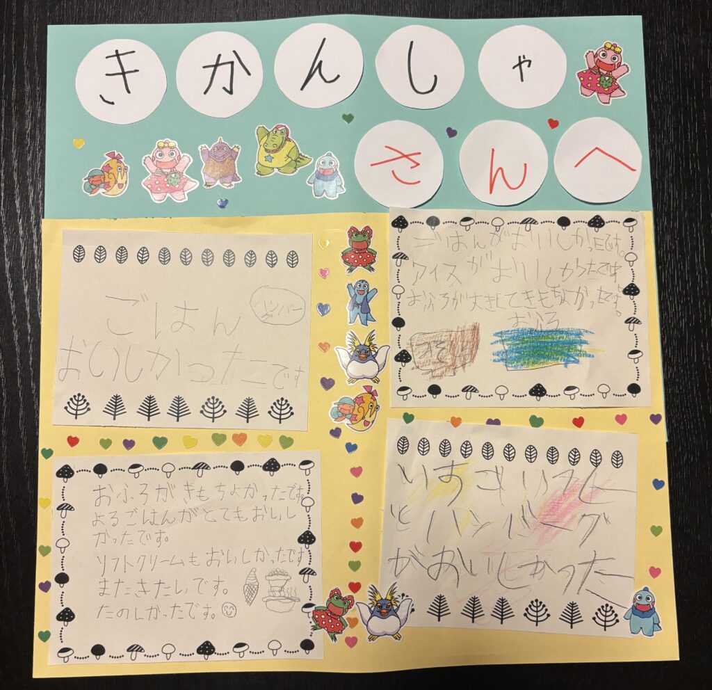 お風呂に入った後は、希感舎の方へのお礼の手紙を書いたり、ビンゴゲームで盛り上がったりと、充実した夜を過ごしました。
