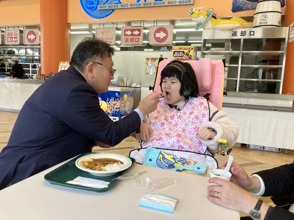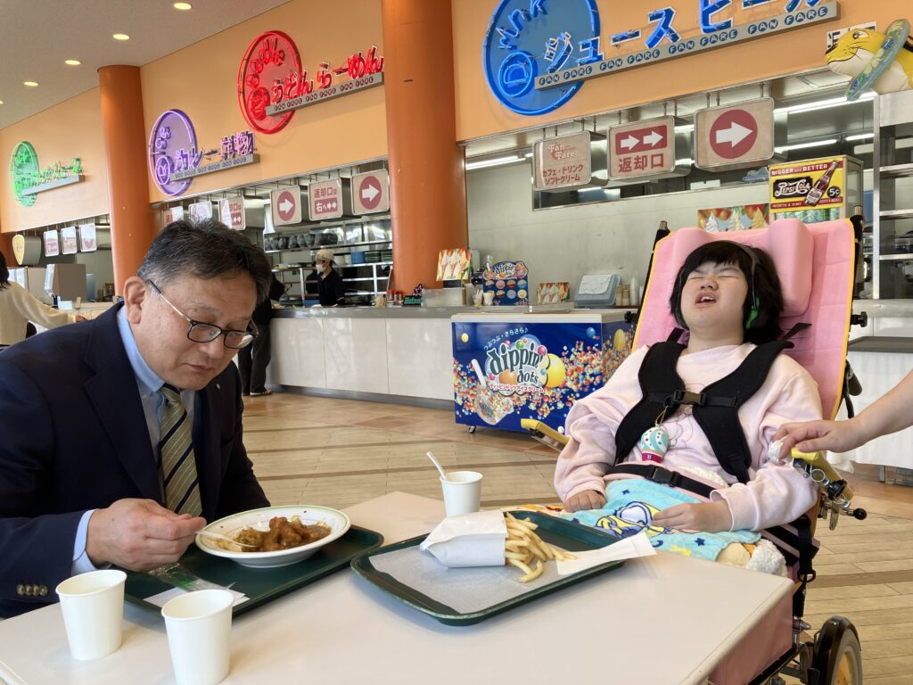 お腹もペコペコ。別府湾を一望できる最高のロケーションで、笑顔いっぱいのランチタイムを楽しみました! (^^ゞ